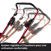 La puissante tondeuse à gazon sans fil GE-CM 36/47 S HW Li Einhell permet de tondre facilement et sans fil la tonte de l'herbe - dans tous les coins de votre jardin. Grâce à la technologie Power X-Change, la tondeuse à gazon fonctionne avec 2 puissantes batteries rechargeables lithium-ion de 18 V à 4.0Ah. Un indicateur de niveau de charge de la batterie avec trois voyants LED permet de garder un œil constant sur la puissance restante. Les batteries de la gamme Power X-Change peuvent être utilisées dans n’importe quel produit de la série de gamme. Pour charger rapidement, deux chargeurs rapides sont fournis. Les résultats de coupe sont garantis à chaque fois par la technologie Vortex etle réglage de la hauteur par un levier unique à 6 positions. Grâce aux quatres batteries livrées et à la technologie twinpack, une tonte plus longue sans recharge est possible. La tondeuse à gazon est recommandée pour les surfaces de gazon allant jusqu'à 700 m². Einhell a conçu la poignée repliable pour vous faciliter le stockage et le transport. Le long manche rabattable avec Softgrip est réglable en hauteur sur trois niveaux afin de vous permettre de travailler confortablement et sans fatigue. Son carter résistant aux chocs nous donne une largeur de coupe de 47 cm. Pour faciliter le transport, il existe une poignée de transport intégrée. La fonction d'éjection latérale et un déflecteur pour éjecter les boutures à l'arrière aidant également à effectuer le travail rapidement. Le bac rigide pour l’herbe a une capacité de 75 litres est équipé d'un indicateur de niveau de remplissage qui permet de voir immédiatement si le vidage est nécessaire. Le bac est doté d'un indicateur de niveau et de deux poignées pratiques pour la vidange. Grâce à l'adaptateur de mulching, la tondeuse à gazon sans fil est également dotée de la fonction mulching. Pour un nettoyage optimal, un grattoir est également inclus