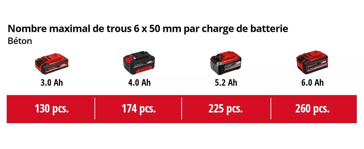 Le marteau perforateur sans fil Einhell HEROCCO 18/20 est un outil polyvalent pour le perçage, le perçage à percussion ou le burinage avec ou sans fixation. Le moteur sans charbons, entraîné par une batterie Power X-Change garantit une plus grande autonomie. En tant que membres de la famille Power X-Change, toutes les batteries rechargeables de la gamme pxc peuvent être utilisées de manière flexible et sans restriction pour vos outils de jardin et d’atelier. Le mécanisme de frappe pneumatique, qui a une fréquence pouvant atteindre 5 500 impacts par minute, permet de forer sans effort même dans le béton - avec une puissance d'impact de 2,2 joules et une capacité de forage dans le béton de 20 millimètres. Les outils peuvent être changés rapidement grâce au mandrin universel SDS-plus. Le variateur électronique est à dosage fin pour travailler avec un toucher optimal pour les opérations sensibles. Pour une utilisation confortable et sans fatigue, la zone de prise en main est ergonomique et souple avec le revêtement « softgrip ». La lumière LED fournit un éclairage optimal pour la zone de travail. Le produit est fourni avec un adaptateur de foret magnétique pour le vissage dans un boîtier de transport et de stockage « E-Box ». Les batteries et le chargeur sont disponibles séparément. Pour un fonctionnement optimal, il est recommandé d’utiliser une batterie de 3,0 Ah ou plus.